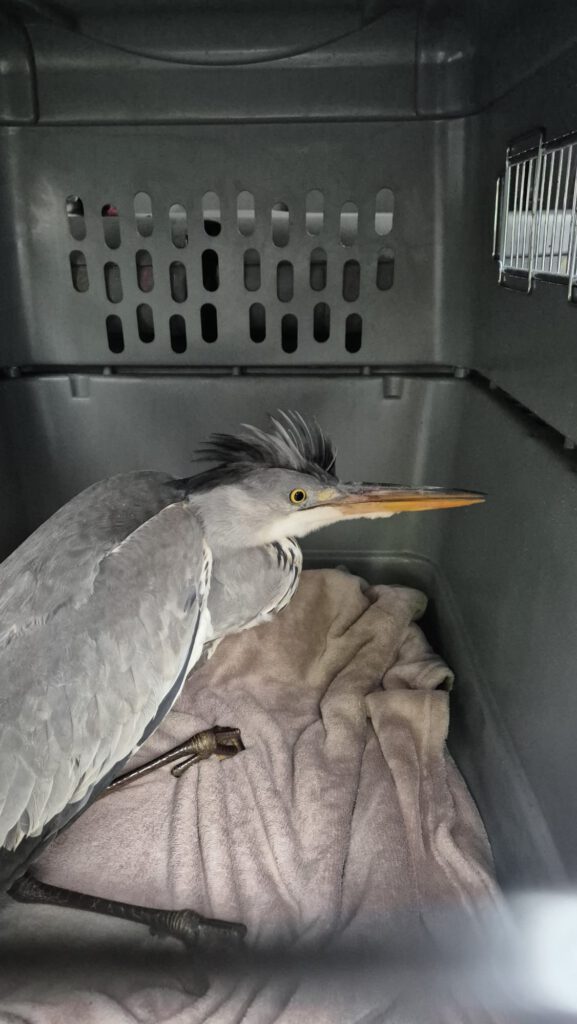 Der Graureiher wurde umgehend tierärztlich versorgt und in die Tierklinik Elversberg gebracht.