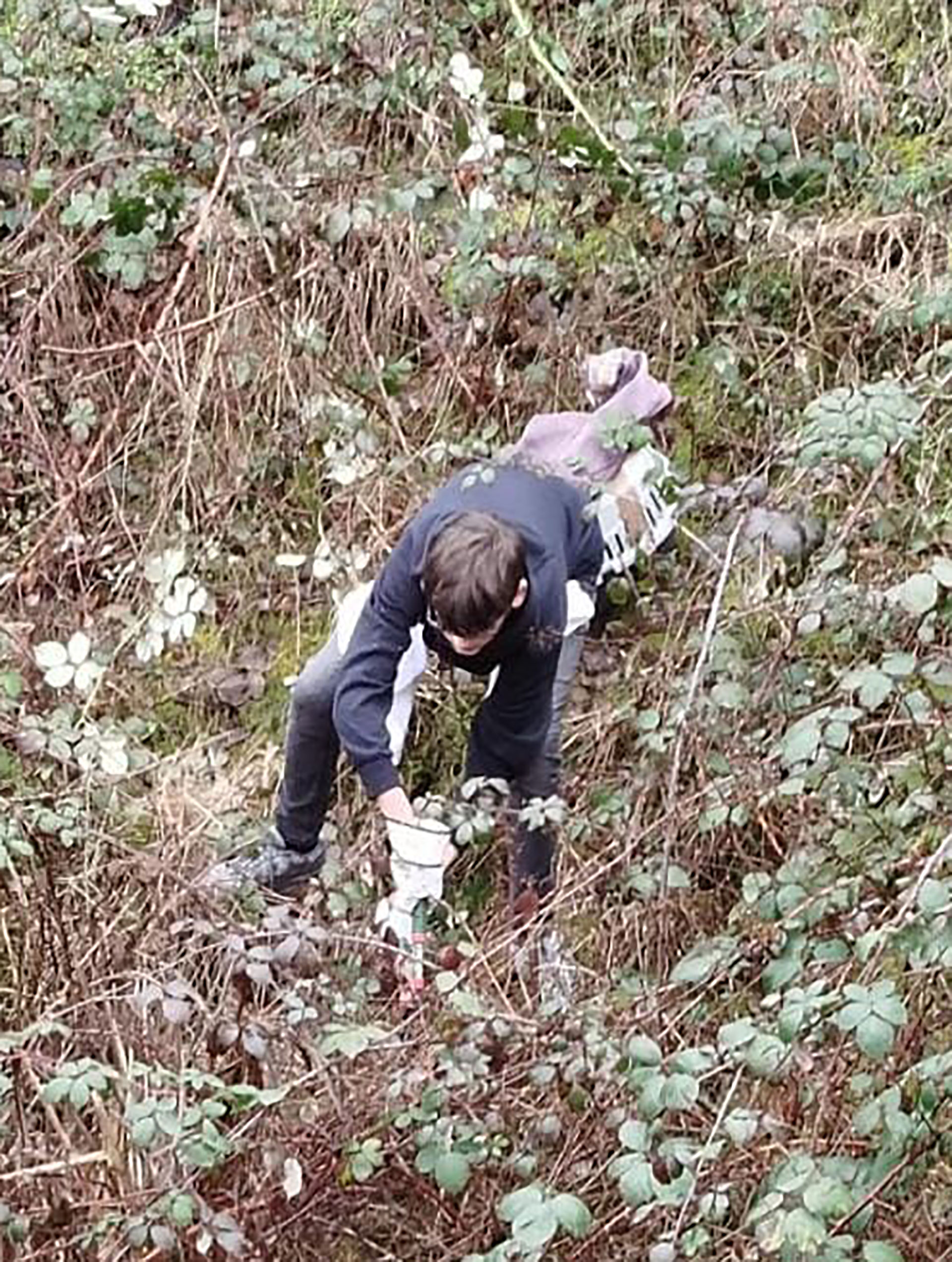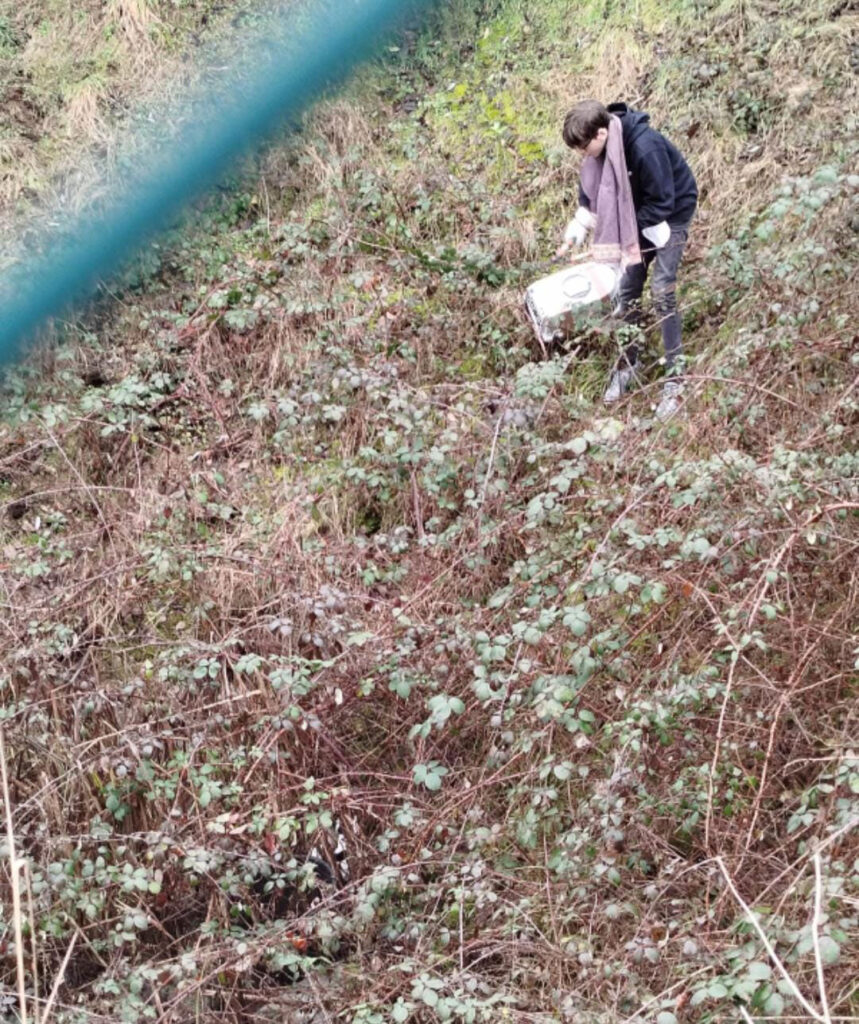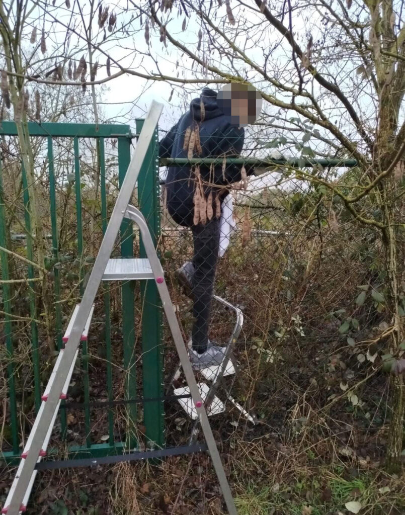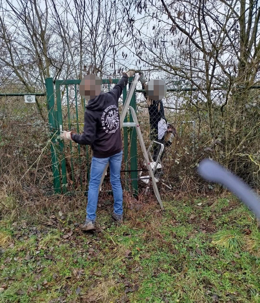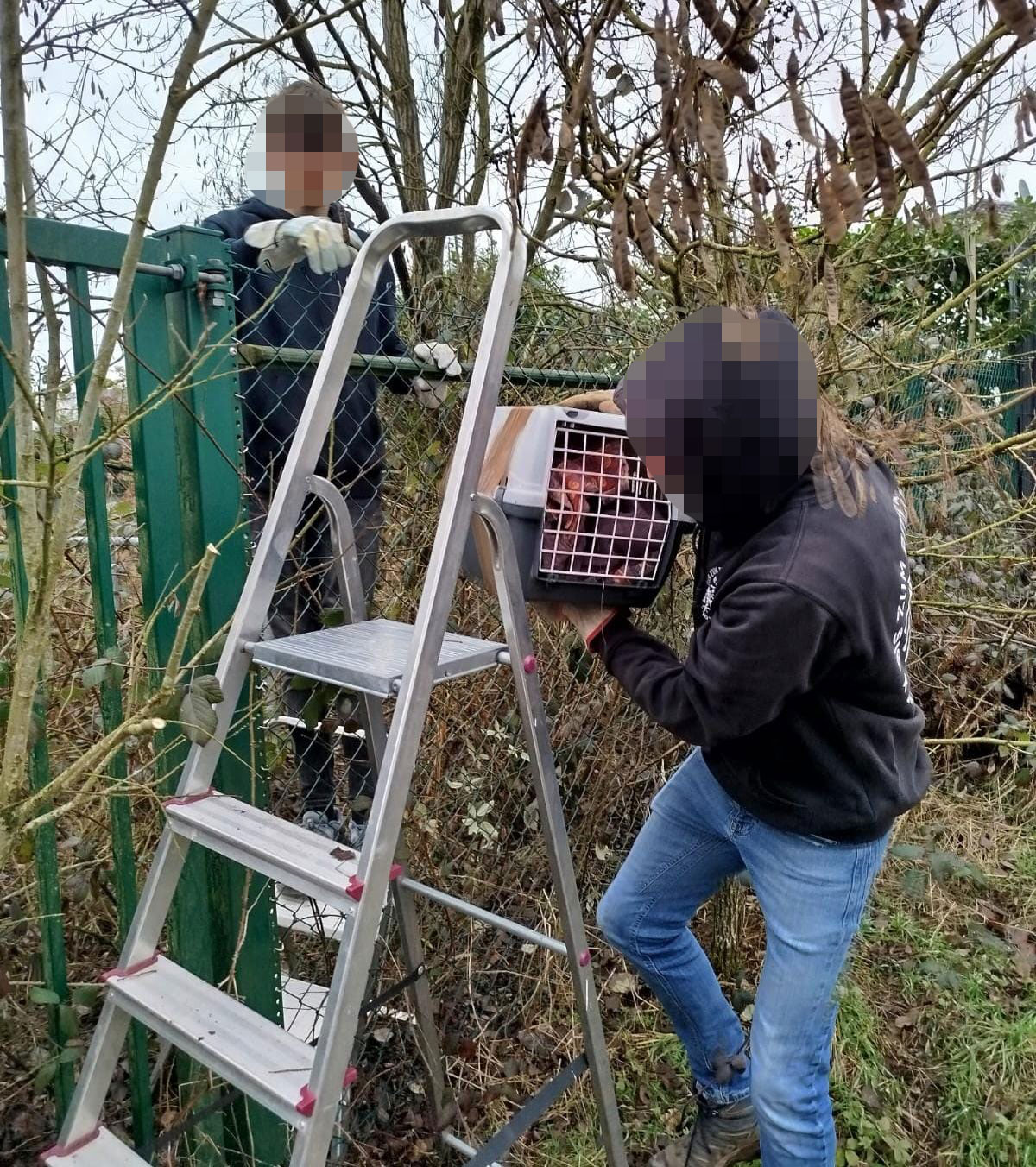 Unser jüngster Tierschützer organisierte Hilfe. Leiter. Heckenschere. Lösungen.